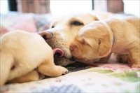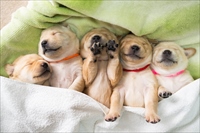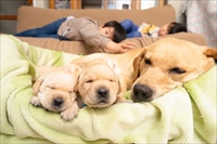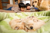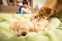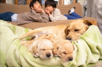 アイメイトと暮らす目が不自由な人は、かけがえのないパートナーに大きな愛情を注いでいます。アイメイトになる子犬、アイメイトを引退したリタイア犬、アイメイトにならずに家庭犬となった不適格犬と暮らす奉仕者も、惜しみなく愛情を注ぎます。そして、子犬と母犬、兄弟姉妹の間にも、温かな愛があります。
