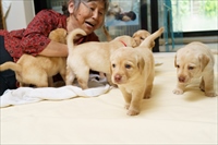 アイメイトに込めたこの4つの意味をビジュアルで感じていただきたいと考え、「アイメイト写真ギャラリー アイメイトは<私の愛する目の仲間>」にまとめました。現役アイメイトと、奉仕家庭のもとで過ごす子犬、リタイア犬、不適格犬などの写真を集めました。