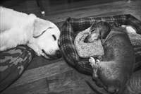 犬は、人類が洞穴で狩りをしながら暮らしていた大昔から、私たちの大切な仲間でした。目が不自由な人のために働くアイメイトも例外ではありません。子犬時代は、兄弟姉妹や奉仕者と仲良く遊んで過ごします。アイメイトにならなかった不適格犬、引退したリタイア犬も、奉仕家庭と人間社会の大切な仲間です。
