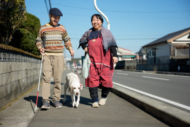 先天的に視覚障害があり、30代で初めてアイメイトを迎えた。20代は就職先の神戸で過ごしたが、神戸での歩行は、歩道がしっかり整備されていて白杖でも問題はなかった。「でも、こっちに帰ってきたら道路事情が全くよろしくない。白杖での歩行がままならなくなってしまったんです」。今でこそ、蔵元さんの自宅前にも歩道が整備されているが、当時は良くて歩道と車道が白線で区別されている程度だった。「今まで自由に歩けていた分、ギャップがすごくて」。どうしたものかと悩んでいた時に、周囲から盲導犬を勧められた。